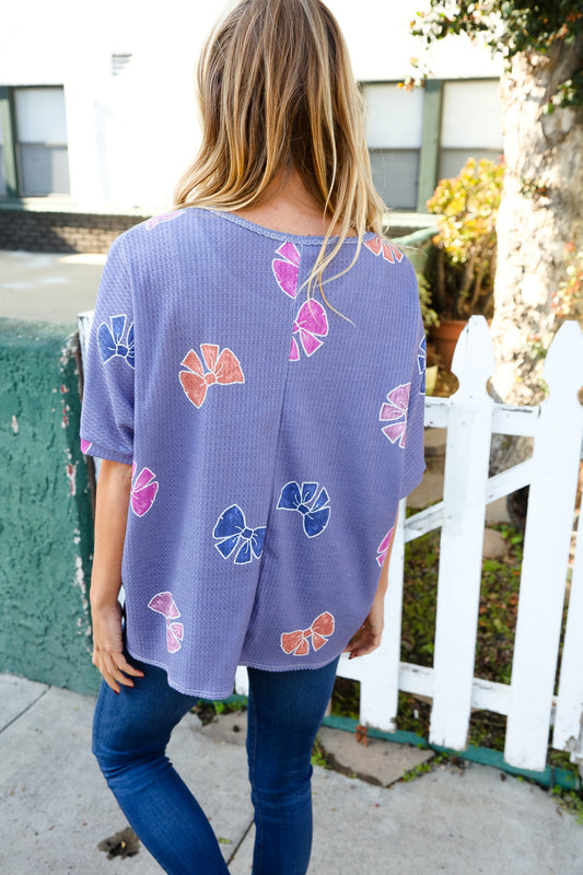 Beautiful You Plum Waffle Knit Dolman Bow Print Pullover