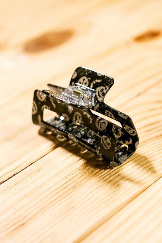 Silver & Black Glitter Jack-O-Lantern Halloween Hair Claw