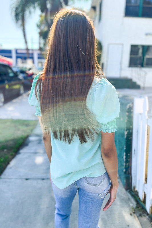 Elegant You Lilac Notched Neck Smocked Short Sleeve Blouse