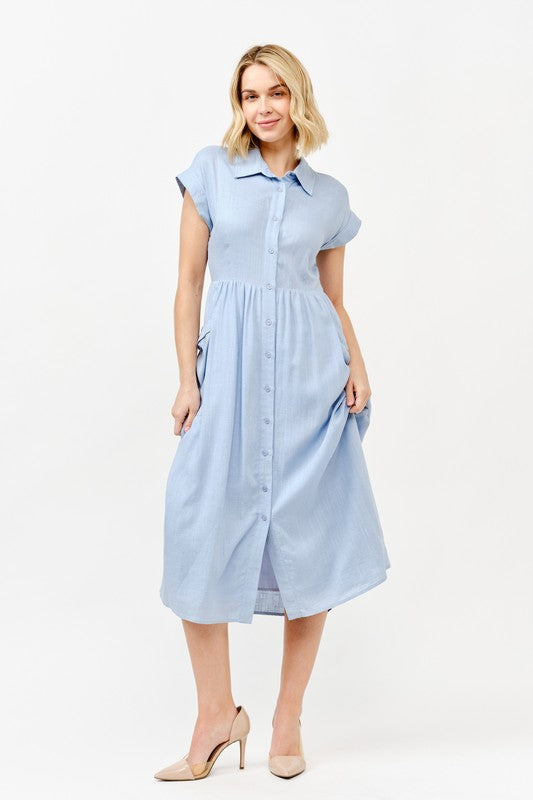 Everyday Chic Denim Blue Button-Down Collared Swing Dress