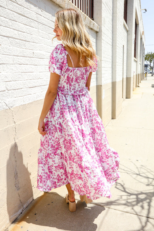 Feeling Femme Pink Sweetheart Neck Bustier Floral Tiered Dress