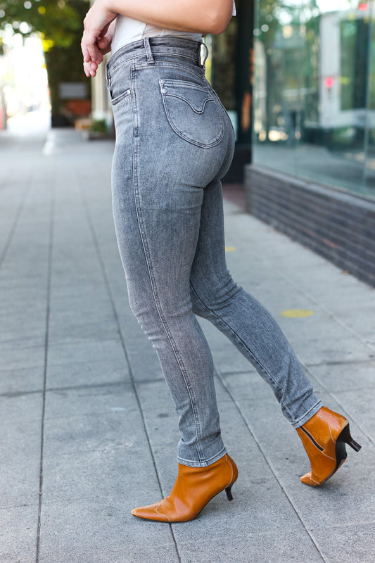 Judy Blue Grey Mid Rise Tummy Control Skinny Jeans