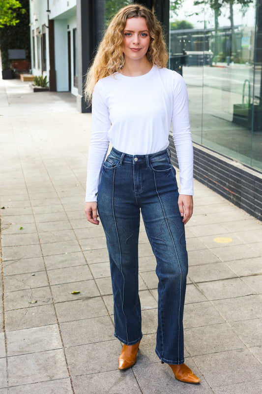 Judy Blue Dark Wash Western Seam Straight Leg Jeans