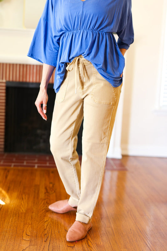 Judy Blue Feeling Femm' Khaki Garment Dyed Drawstring Jogger Jeans
