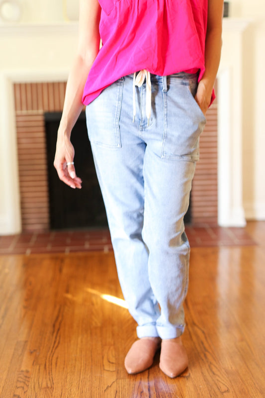 Judy Blue Everyday Bliss Light Wash Drawstring Jogger Style Jeans
