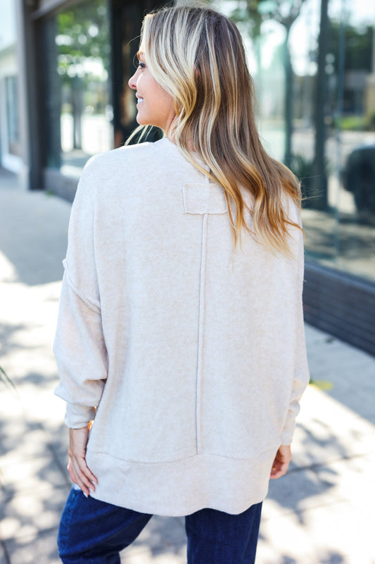 Lock Eyes Heather Beige Exposed Seam Melange Sweater