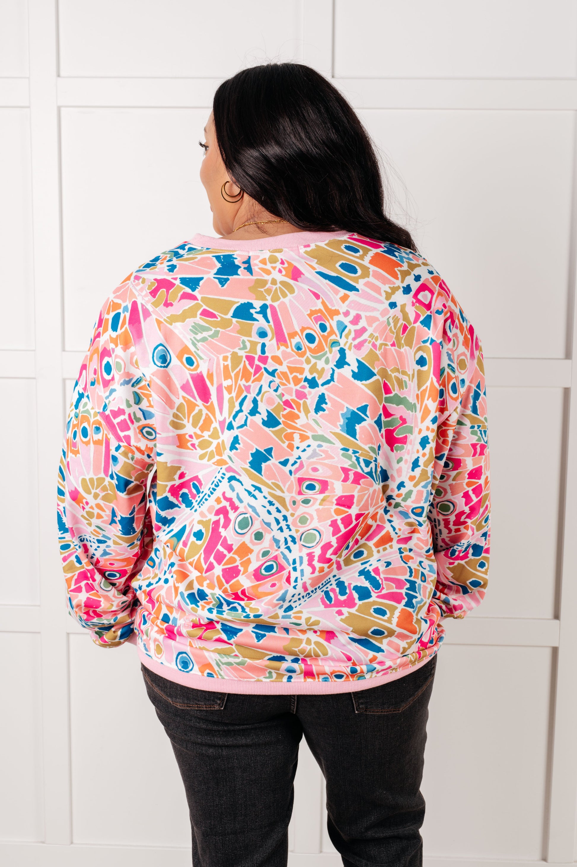 Embrace the chaos with our Confusing Times Abstract Print Pullover! Made with cozy French Terry fabric, this pullover features a banded, ribbed neckline, cuffs, and hemline for a comfortable fit. With drop shoulders and side pockets, it's perfect for those unpredictable days.