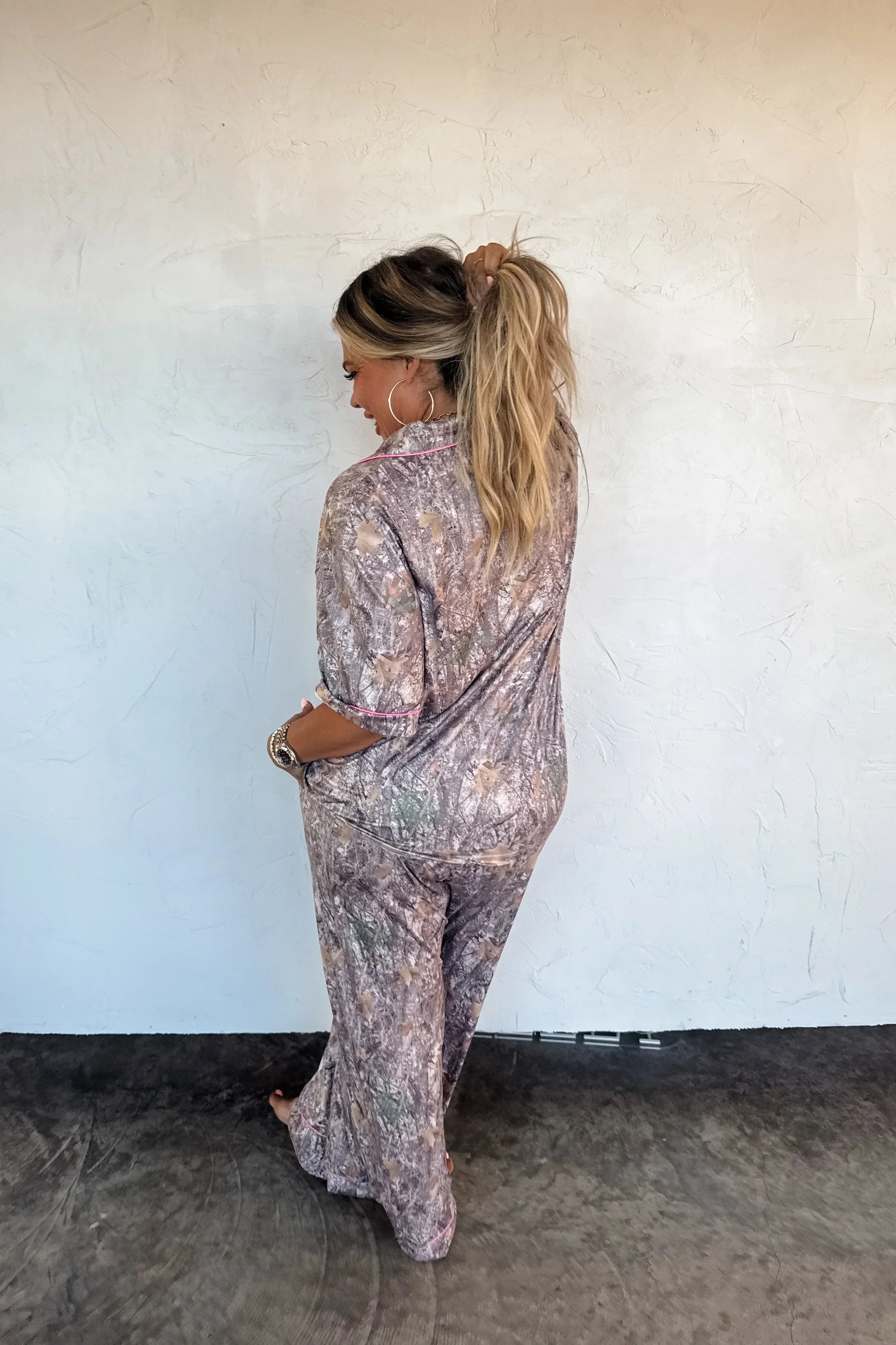 Our Luxe PJ Lounge sets are the perfect sleep set for both comfort and style. Features a button-up top with short sleeves and matching PANTS, with cute new designs that will keep you looking good while you relax. The fabric is ultra-soft, STRETCHY and lightweight for a relaxed feel. Pants have pockets and elastic waist. Feature contrast fabric on trim and collar for an extra "luxe" feel.